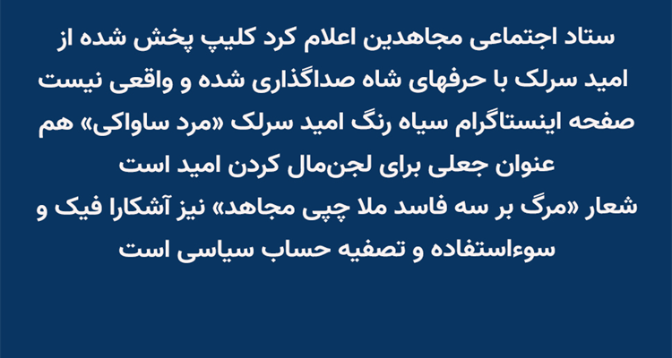 ستاد اجتماعی مجاهدین اعلام کرد کلیپ پخش شده از امید سرلک با حرفهای شاه، صداگذاری شده و واقعی نیست