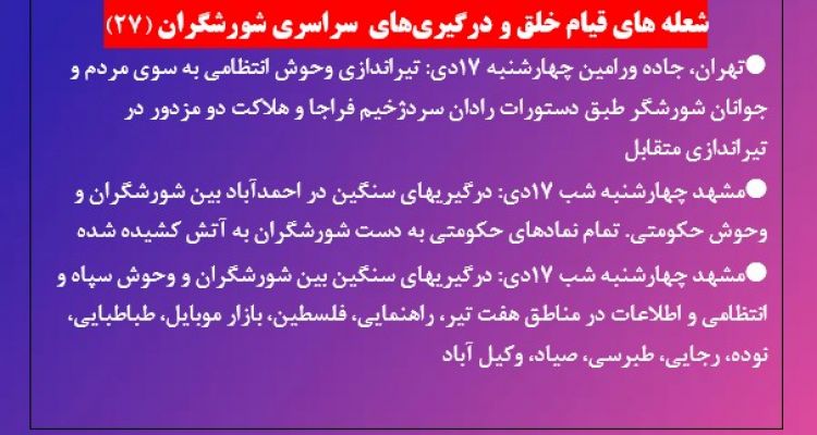 سیزدهمین روز قیام سراسری- درگیری و رویارویی با نیروهای سرکوبگر انتظامی