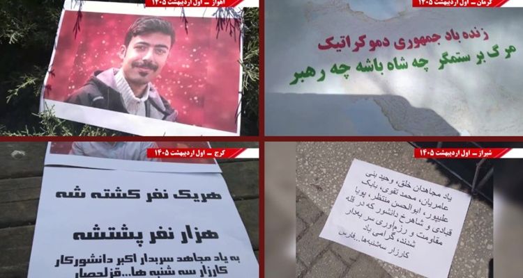 شهرهای میهن صحنه شعارنویسی و نصب تصاویر در واکنش به اعدام دو مجاهد خلق