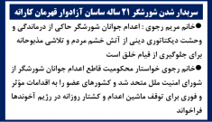 اعدام جنایتکارانه شورشگر دلیر عرفان کیانی توسط دژخیمان رژیم آخوندی + پیام خانم مریم رجوی