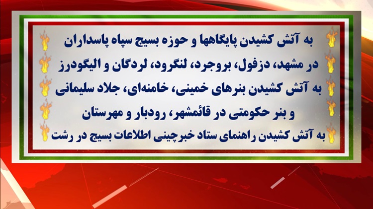 به آتش کشیدن پایگاهها و حوزه بسیج سپاه پاسداران در مشهد، دزفول، بروجرد، لنگرود، لردگان و الیگودرز