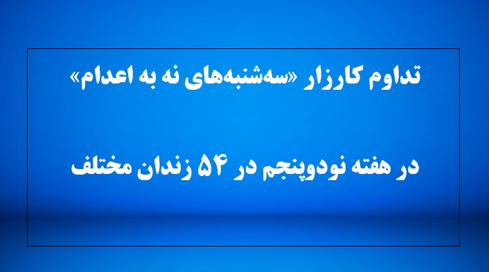 کارزار "سهشنبههای نه به اعدام" سهشنبه ۲۷ آبان ۱۴۰۴ در هفته نودوپنجم در ۵۴ زندان زیر در اعتصاب غذا میباشند: