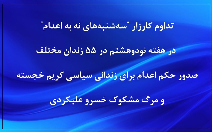 تداوم کارزار "سهشنبههای نه به اعدام" در هفته نودوهشتم در ۵۵ زندان مختلف