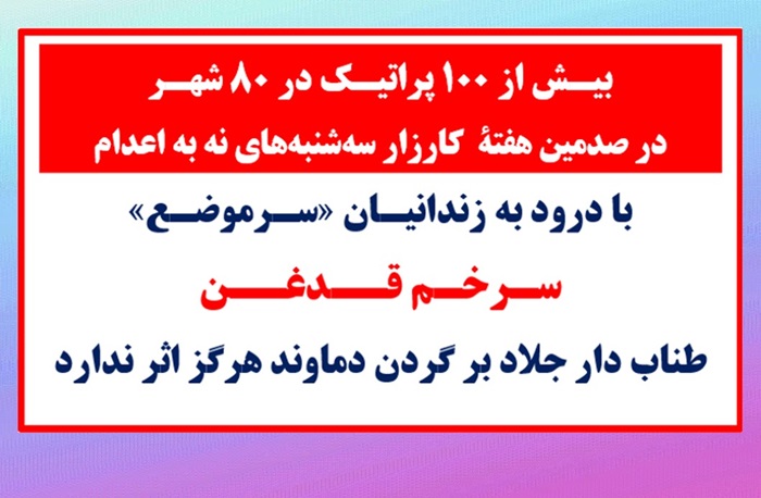 •بیـش از ۱۰۰ پراتیـک در ۸۰ شهـر در صدمین هفتة کارزار سهشنبههای نه به اعدام با درود به زندانیـان «سـرموضـع»