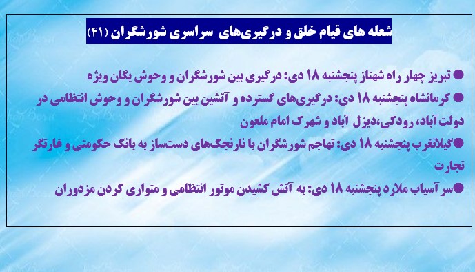 کرمانشاه پنجشنبه ۱۸ دی: درگیریهای گسترده و آتشین بین شورشگران و وحوش انتظامی در دولتآباد، رودکی،دیزل آباد و شهرک امام ملعون