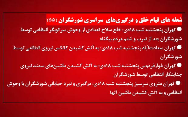 تهران سعادتآباد پنجشنبه شب ۱۸دی: به آتش کشیدن کانکس نیروی انتظامی توسط شورشگران