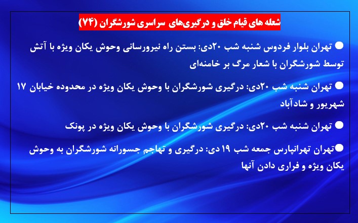 تهران شنبه شب ۲۰دی: درگیری شورشگران با وحوش یکان ویژه در پونک