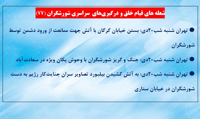 تهران شنبه شب۲۰دی: بستن خیابان گرگان با آتش جهت ممانعت از ورود دشمن توسط شورشگران
