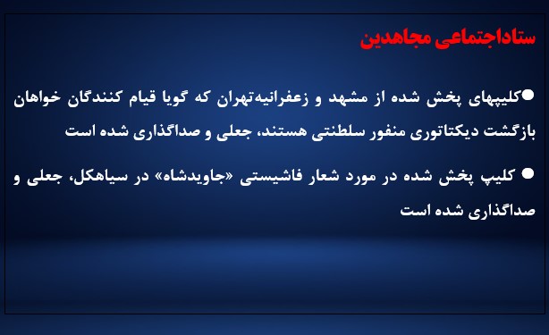 کلیپهای پخش شده از مشهد و زعفرانیهتهران که گویا قیام کنندگان خواهان بازگشت دیکتاتوری منفور سلطنتی هستند، جعلی و صداگذاری شده است
