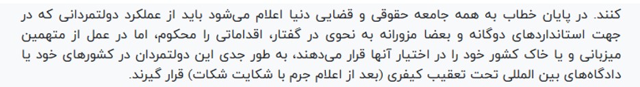 در پایان خطاب به همه جامعه حقوقی و قضایی دنیا اعلام میشود