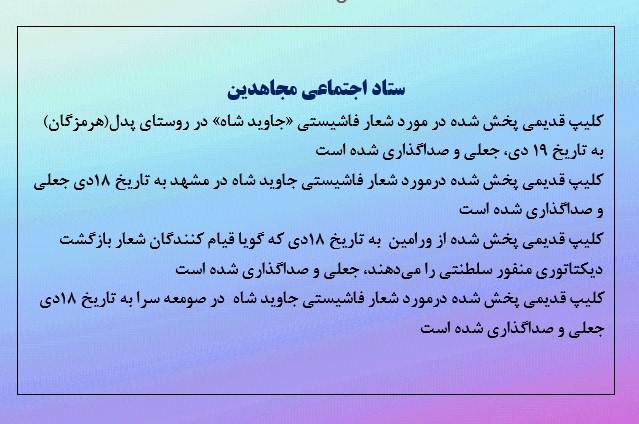 کلیپ قدیمی پخش شده در مورد شعار فاشیستی «جاوید شاه» در روستای پدل(هرمزگان) به تاریخ ۱۹ دی، جعلی و صداگذاری شده است