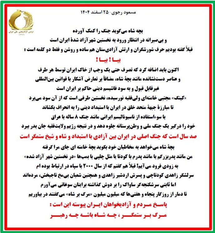 مسعود رجوی-۲۵ اسفند ۱۴۰۴