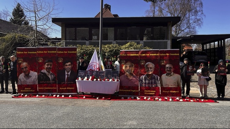 گرامیداشت یاد و خاطره ۶شهید مجاهد خلق در برابر لانه جاسوسی آخوندها توسط ایرانیان آزاده در کپنهاگ