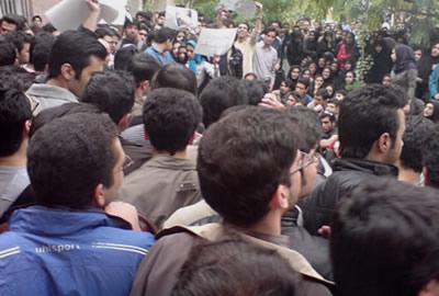 صدها نفر از دانشجویان در مقابل درب دانشگاه اصلی تهران تجمع کرده و شعار مرگ بر دیکتاتور! و مرگ بر تو! میدادند