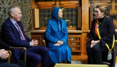 استقبال ایولترم نخستوزیر سابق بلژیک و شهردار شهر ایپر از خانم مریم رجوی در شهرداری شهر تاریخی ایپر