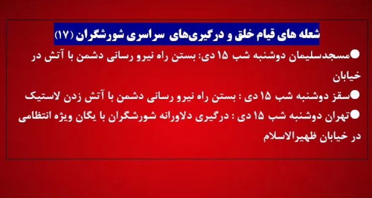 اسامی ۱۳تن دیگر از شهیدان سرفراز قیام سراسری، شمار شهیدان دستکم به ۳۱تن بالغ میشود ۴نوجوان ۱۴، ۱۵و ۱۷ساله در میان شهیدان دیده میشود