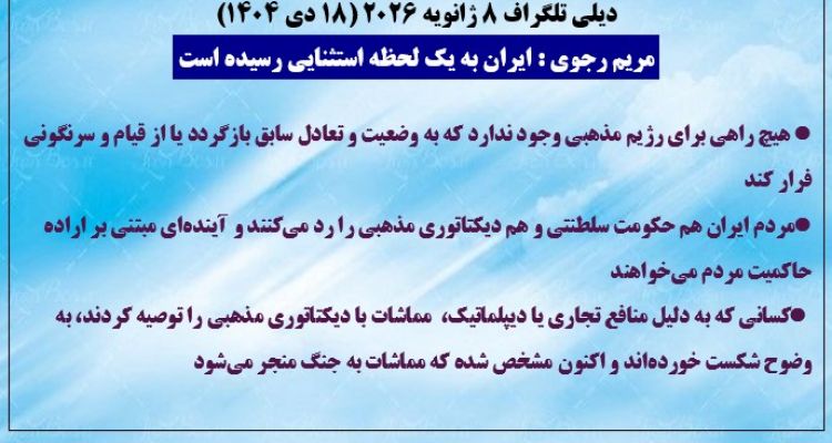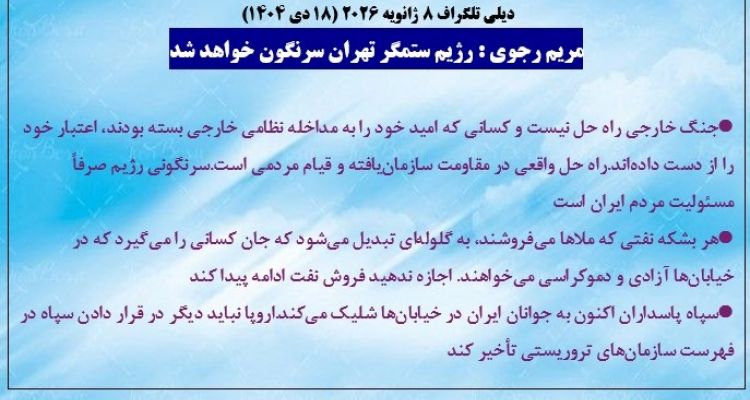 دیلی تلگراف ۸ ژانویه (۱۸ دی) مریم رجوی : رژیم ستمگر تهران سرنگون خواهد شد