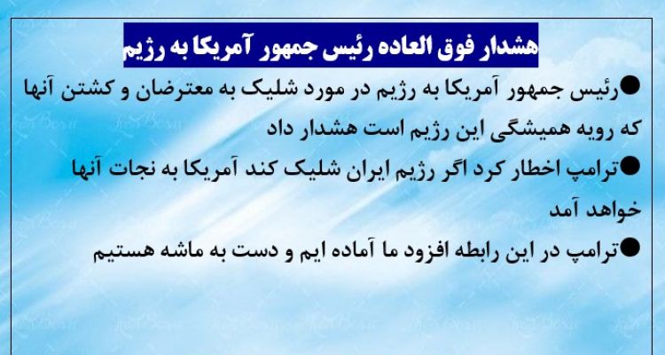 هشدار فوق العاده رئیس جمهور آمریکا به رژیم
