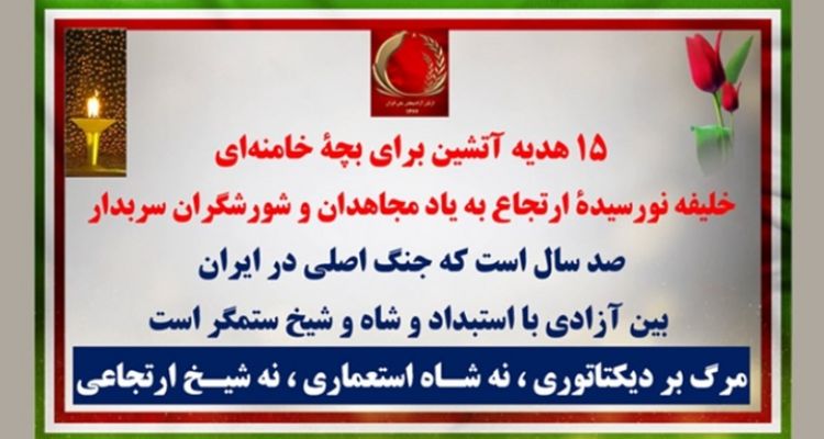 ۱۵هدیهٔ آتشین برای بچهٔ خامنهای خلیفـه نورسیدهٔ ارتجـاع به یاد مجاهدان و شورشگران سربدار