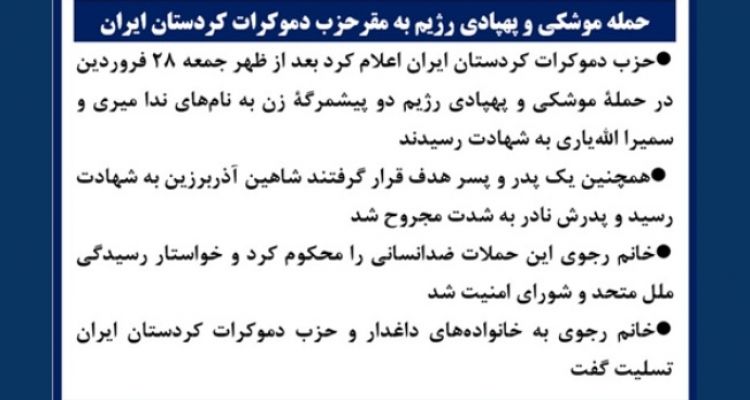 حمله موشکی و پهپادی به مقر حزب دموکرات کردستان ایران