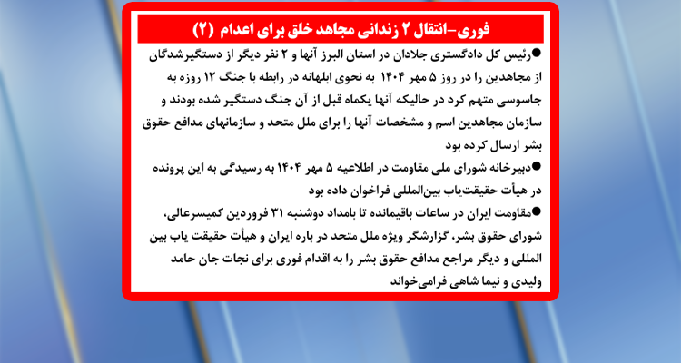 حکم جنایتکارانه اعدام و مصادره اموال برای ۴ زندانی قیام دیماه ۱۴۰۴