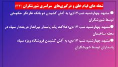 یازدهمین روز قیام: خروش آتشین مشهد و نبرد خونین لردگان؛ تسخیر محلات و به آتش کشیدن نمادهای دشمن در سراسر ایران - اطلاعیه شماره ۲۹