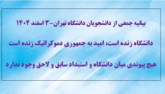 بیانیه جمعی از دانشجویان دانشگاه تهران: دانشگاه زنده است، امید به جمهوری دموکراتیک زنده است