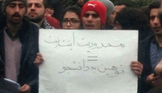شعارهای زندانی سیاسی آزاد باید گردد به هنگام سخنرانی آخوند روحانی در دانشگاه صنعتی شریف