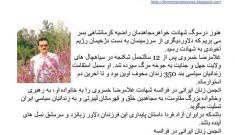 بیانیة زندانی سیاسی علی معزی پدر دو مجاهد اشرفی دربارة شهادت مجاهد قهرمان غلامرضا خسروی