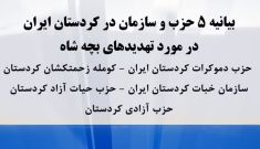 بیانیه ۵ حزب و سازمان در کردستان ایران در مورد تهدیدهای بچه شاه