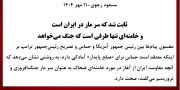 پیروی از پیامآوران توحید و آزادی و انقلاب، نبرد با همین دشمن غدار است که بانی اصلی جنگ برای سدبستن در برابر قیام مردم ایران است و کشتار مردم بیگناه سود میبرد. مردم این منطقه از شیعه تا سنی، از مسیحی تا مسلمان و یهودی دشمن یکدیگر نیستند؛ بلکه میخواهند و میتوانند در صلح و دوستی، همزیستی بردبارانه داشته باشند.