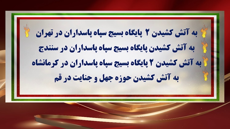 •    به آتش کشیدن ۲ پایگاه بسیج سپاه پاسداران در کرمانشاه