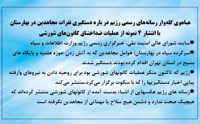 هیاهوی گله‌وار رسانه‌های رسمی رژیم در باره دستگیری نفرات مجاهدین در بهارستان با انتشار 4 نمونه از عملیات ضداختناق کانون‌های شورشی