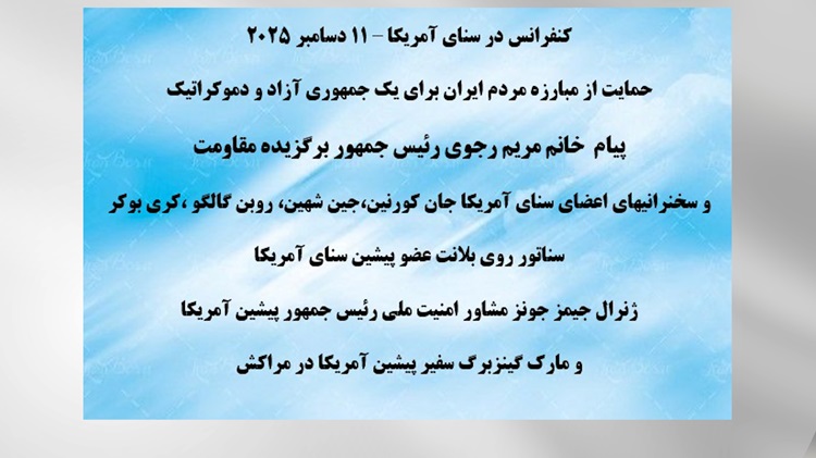 پیام خانم مریم رجوی رئیس جمهور برگزیده مقاومت و سخنرانیهای اعضای سنای آمریکا جان کورنین، جین شهین، روبن گالگو، کری بوکر، سناتور روی بلانت عضو پیشین سنای آمریکا