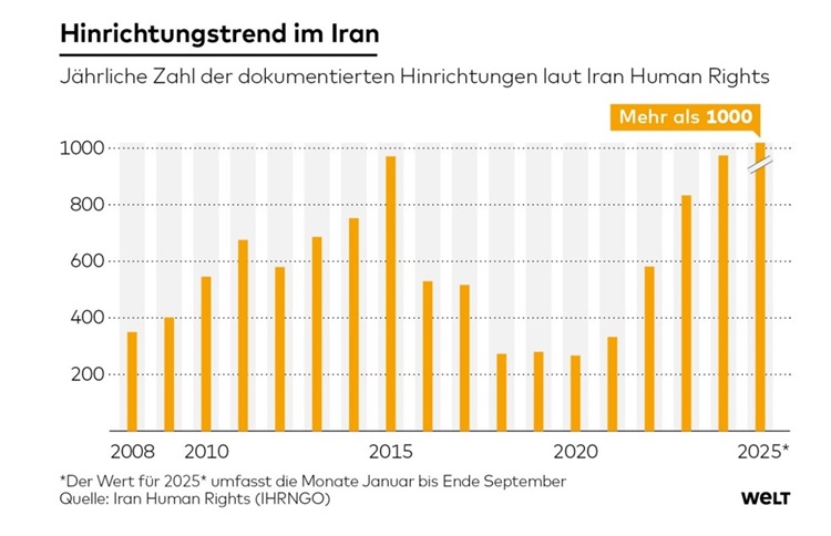 حملات اسرائیل و آمریکا به برنامه هسته‌ای ایران در ماه ژوئن، نقطه عطفی در تشدید سرکوب‌های دولتی بود. قانونی جدید، تعریف جرم جاسوسی را گسترش داد. پیش از این، جاسوسی جرم سنگینی محسوب می‌شد، اما طبق قانون تازه، حتی تماس ساده با رسانه‌های خارجی یا رسانه‌های ایرانی تبعیدی نیز می‌تواند به‌عنوان جاسوسی تلقی شود.در ماه اوت، یک کمیسیون تحقیق سازمان ملل متحد مستند کرد که مقامات ایرانی بطور سیستماتیک اتهامات جاسوسی را علیه روزنامه‌ نگاران جعل می‌کنند. این کمیسیون نگرانی خود را در مورد جان و امنیت ۴۵ روزنامه‌ نگار و خانواده‌هایشان که تهدیدهای موثقی دریافت کرده‌اند، ابراز کرد. به گفته این کمیسیون، افراد آسیب ‌دیده در هفت کشور، از جمله آلمان، در تبعید زندگی می‌کنند.