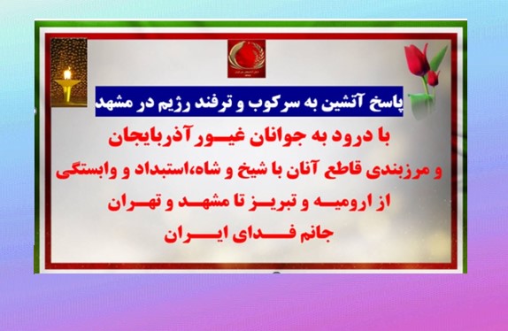 •با درود به جوانان غیـورآذربایجان و مرزبندی قاطع آنان با شیخ و شاه،استبداد و وابستگی از ارومیـه و تبریـز تا مشهـد و تهـران جانم فــدای ایــران