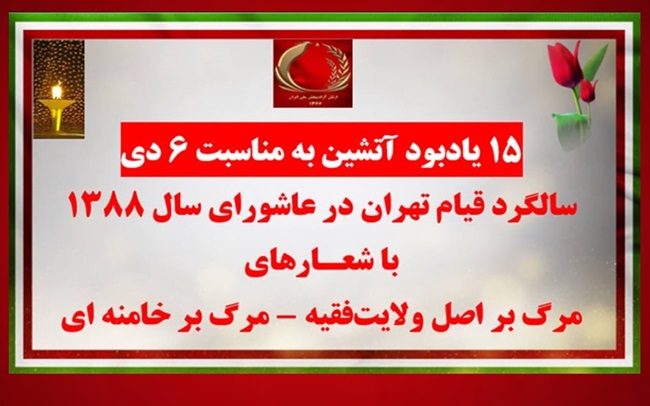 ۱۵ یادبود آتشین به مناسبت ۶ دی سالگرد قیام تهران در عاشورای سال ۱۳۸۸ با شعـارهای مرگ بر اصل ولایت‌فقیه و مرگ بر خامنه ای