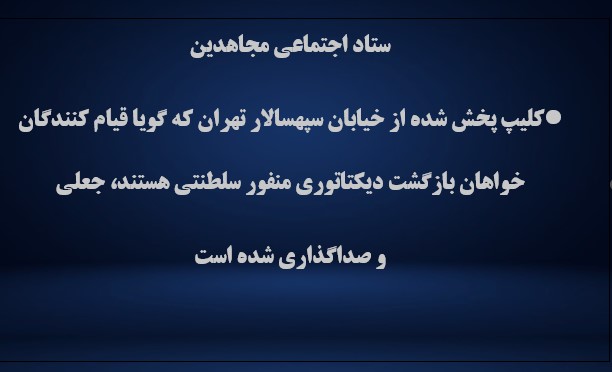 کلیپ پخش شده از خیابان سپهسالار تهران که گویا قیامکنندگان خواهان بازگشت دیکتاتوری منفور سلطنتی هستند، جعلی و صداگذاری شده است