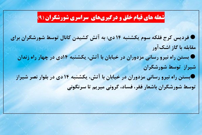  اهواز یکشنبه ۱۴ دی : هدف قراردادن پایگاه بسیج سپاه پاسداران در سپیدار با پرتاب کوکتل