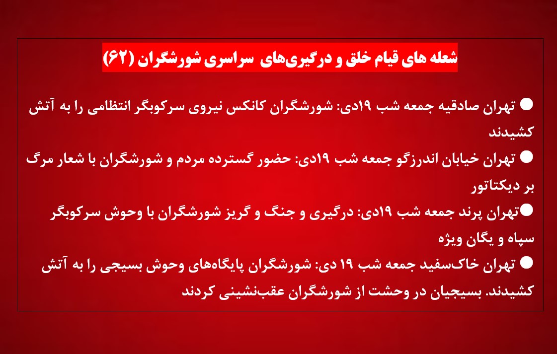 تهران خاکسفید جمعه شب ۱۹دی: شورشگران پایگاههای وحوش بسیجی را به آتش کشیدند. بسیجیان دروحشت از شورشگران عقبنشینی کردند