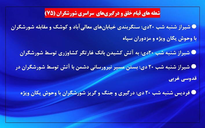 شیراز شنبه شب ۲۰ دی: بستن مسیر نیرورسانی دشمن با آتش توسط شورشگران در قدوسی غربی