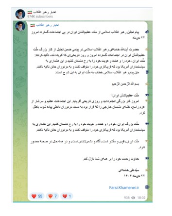 تحت عنوان «ملت عظیم الشأن ایران!»