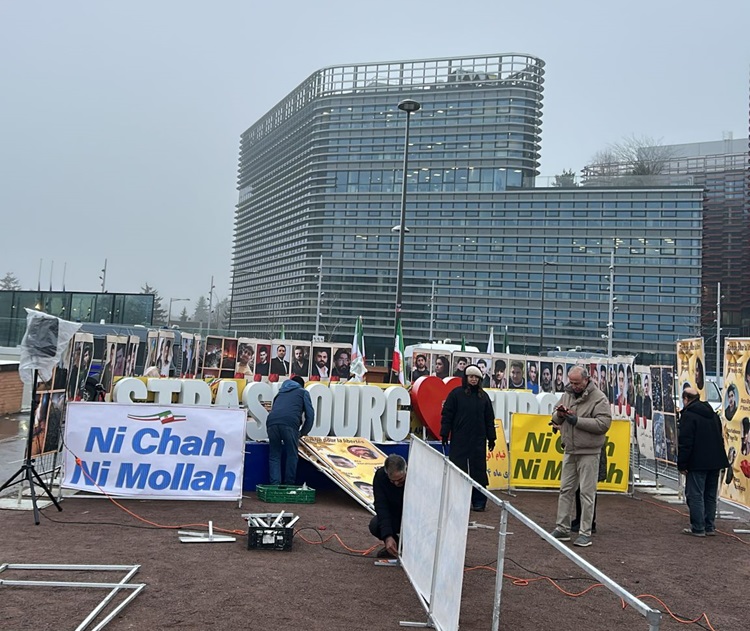 آکسیون و نمایشگاه عکس ایرانیان آزاده در استراسبورگ همزمان با تصویب قعطنامه پارلمان اروپا علیه سرکوب قیام کنندگان توسط دیکتاتوری خامنهای