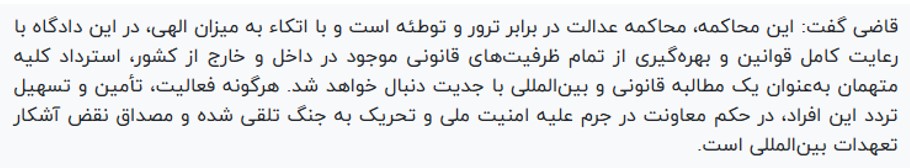 با عنایت به اینکه این دادگاه، دادگاهی برای مقابله با توطئه و ترور است