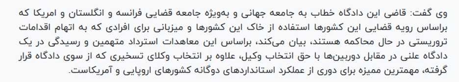در پایان خطاب به همه جامعه حقوقی و قضایی دنیا اعلام میشود