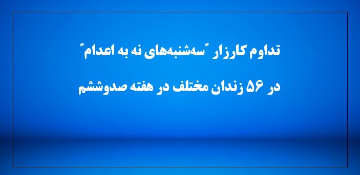 کارزار "سهشنبههای نه به اعدام" روز سهشنبه ۱۴ بهمن ۱۴۰۴ در هفته صدوششم در ۵۶ زندان زیر در اعتصاب غذا میباشند: