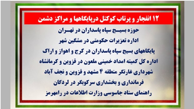 • تهاجم به پایگاه بسیج سپاه پاسداران در کرج با پرتاب کوکتل