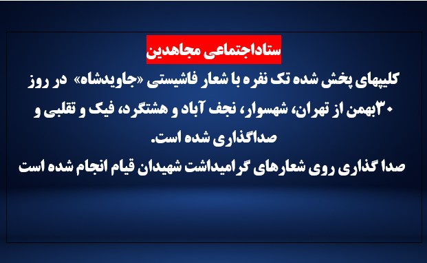 کلیپهای پخش شده تک نفره با شعار فاشیستی «جاویدشاه» در روز ۳۰بهمن از تهران، شهسوار، نجف آباد و هشتگرد،
