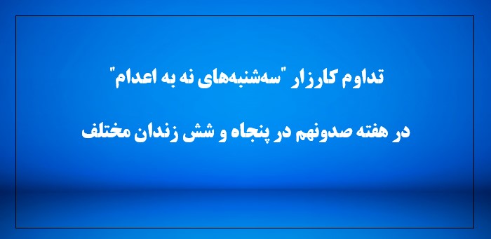 کارزار "سهشنبههای نه به اعدام" روز سهشنبه ۵ اسفند ۱۴۰۴ در هفته صدونهم در ۵۶ زندان زیر در اعتصاب غذا میباشد: