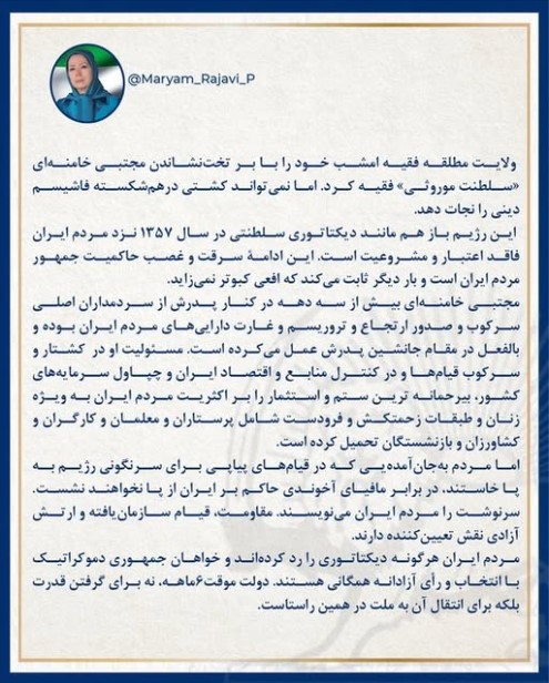 این ادامة سرقت و غصب حاکمیت جمهور مردم ایران است و بار دیگر ثابت میکند که افعی کبوتر نمیزاید.